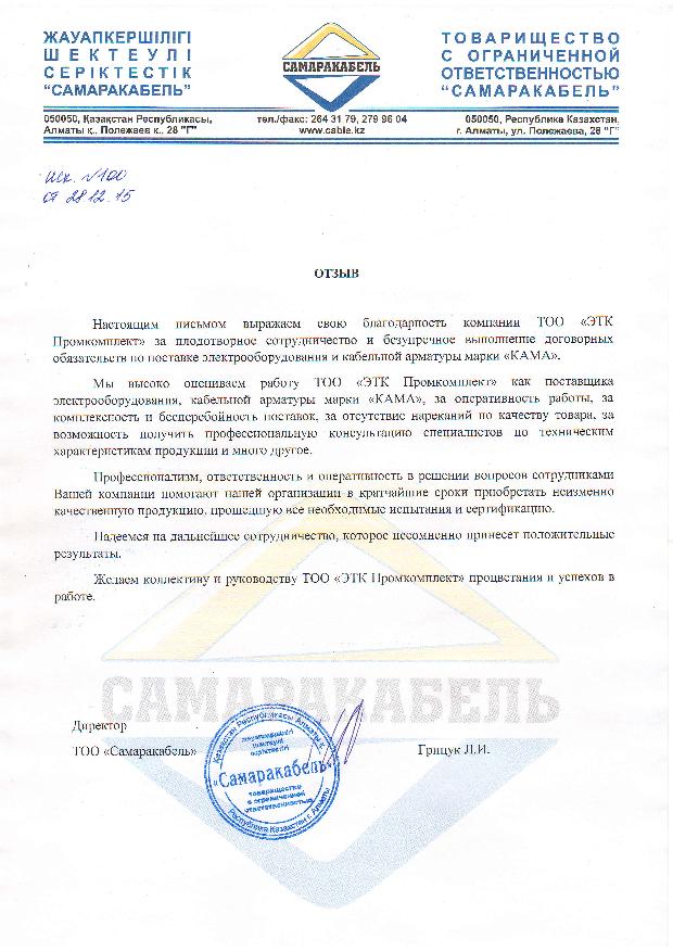 ТОО «ЭТК Промкомплект» - одно из ведущих предприятий Казахстана по поставкам продукции Электротехнического назначения, действующих, строящихся и реконструируемых объектов как промышленного, так и гражданского назначения.